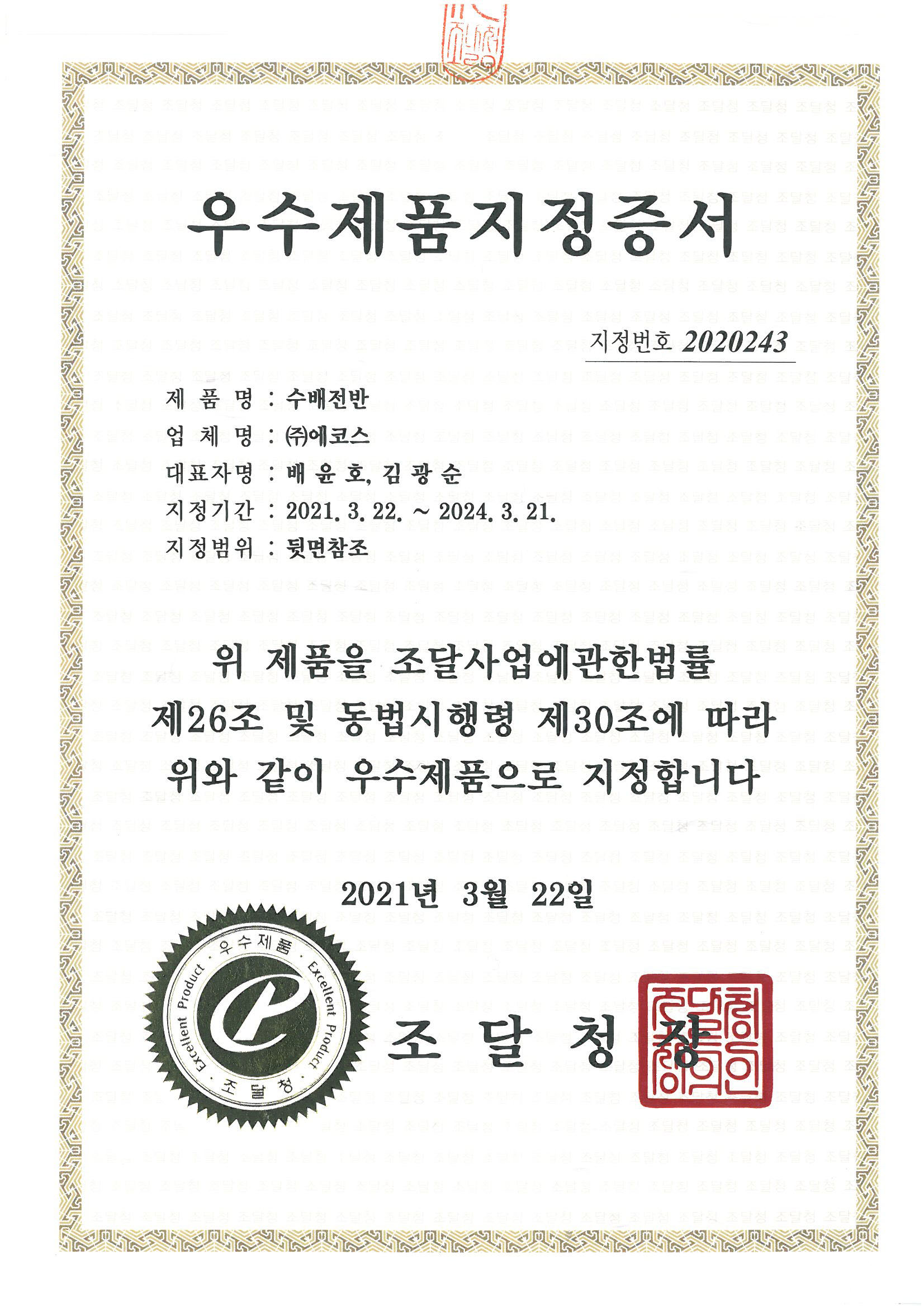 * 첨부: 정부조달우수제품지정증서 파일